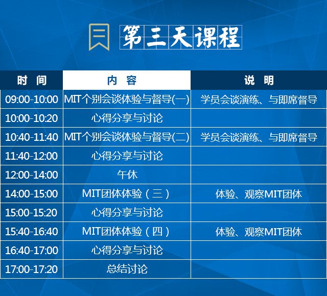 课程特点:理论传授+技巧示范+案例分享+现场督导一体化